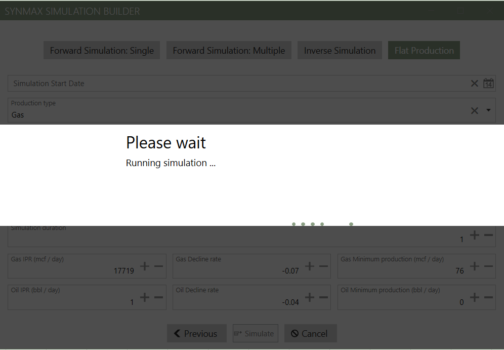 A Please wait screen appears while the model queries history, prepares parameters, and connects to the Production Studio API.
